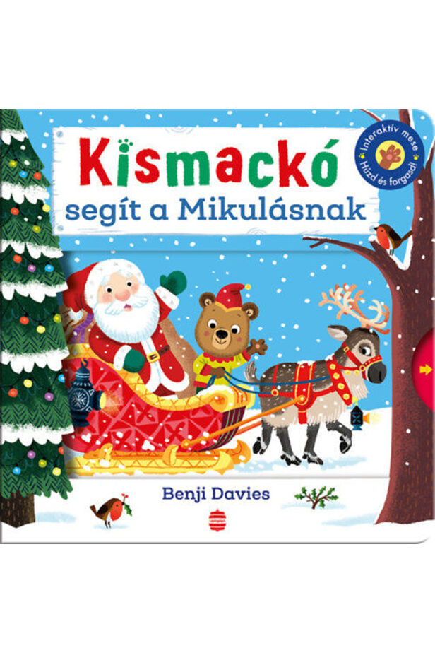 Hűha, Kismackó elkísérheti a Mikulást! Nézd meg te is, mi minden történik az Északi-sarkon! A fülek és kerekek mozgatásával rengeteg új részlet bukkan elő.