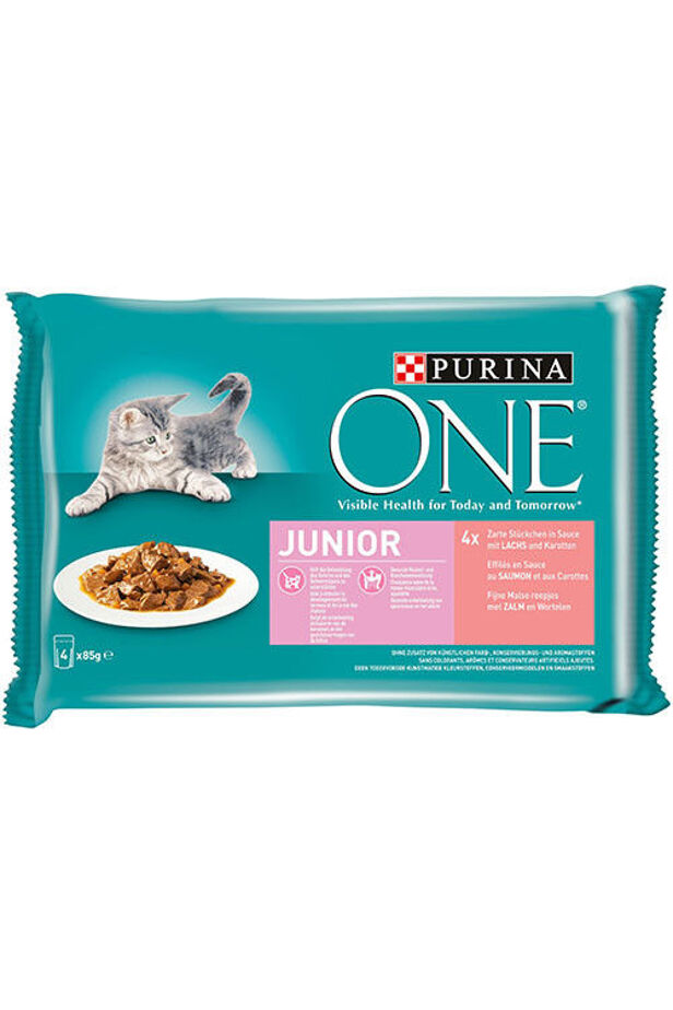 PURINA ONE JUNIOR Wet cat food with salmon and carrots 4x85g